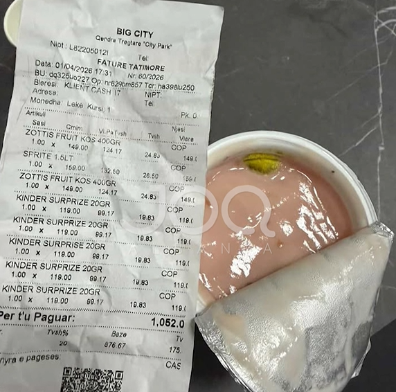 Ajo ka dërguar një video ku shfaqet, sipas pretendimit të saj, një kos frutash Zottis i blerë në Big Market, ku në pamje vihet re prania e mykut në produkt. Qytetarja ka dërguar gjithashtu edhe kuponin tatimor, i cili sipas saj vërteton blerjen e kryer pak minuta më parë.